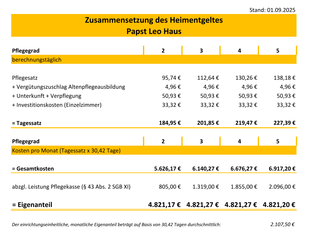 Papst Leo Haus Kostensätze